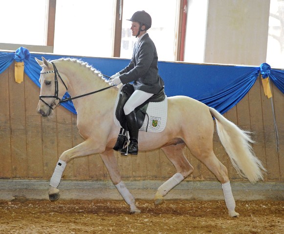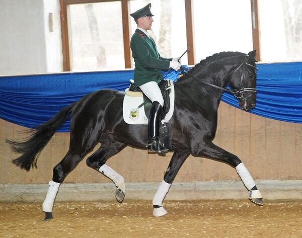 Im Haupt- und Landgestüt Schwaiganger wurden am 17. und 18. März besonders ausgewählte Hengste einem großen Interessentenkreis präsentiert. Von der Sächsischen Gestütsverwaltung waren die Hengste DECURIO v. Desperados mit GW Kay Pawlowska und der Reitponyhengst HESSELTEICHS GRIMALDI v. Gandalf mit Bereiterlehrling Linda Casper angereist.