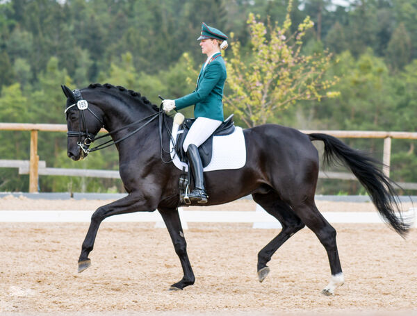 In den Dressurpferdeprüfungen der Klasse L brillierte der Bundeschampionatsfinalist FREIHERR VON STEIN: einmal Gold und einmal Silber gingen auf das Konto des Trakehner Bewegungskünstlers und seiner Reiterin Susann Göbel. Am letzten Turniertag konnte das sympathische Reiter-Pferd-Paar diesen Erfolg noch einmal mit dem Sieg in der Dressurpferdeprüfung der Klasse M toppen. Beeindruckend waren neben der überaus harmonisch gerittenen Vorstellung zudem die von der Kommission vergebenen Wertnoten: bei einem Endergebnis von 8,4 erhielt der Hengst in der Einzelwertung keine Note unter 8,0 – für den Galopp vergaben die Richter sogar eine glatte 9,0!
