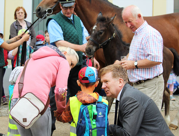 „Grundgedanke des Sächsischen Kindertages ist der Wunsch, Kinder, aber auch ihre Eltern, Lehrer und Erzieher, in einer Zeit wachsender Urbanisierung und Digitalisierung wieder ganz nah ans Pferd bringen.“ so Philipp Klingbeil, Assistent der Sächsischen Gestütsverwaltung im Hauptgestüt Graditz.