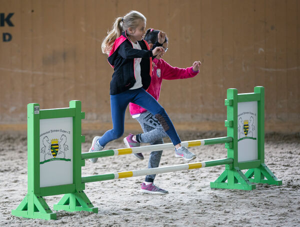 Mit neugierigen Blicken schauen sich die neben ihren Mutterstuten stehenden Fohlen im Innenhof des Hauptgestüts Graditz um: So viele Kinder auf einmal haben sie noch nie gesehen. Etwa 200 Vorschul- und Grundschulkinder aus der Region Graditz / Torgau sind beim ersten Graditzer Kindertag dabei. Die seit vielen Jahren erstmalig wieder durchgeführte Fohlentaufe bildet den Tageshöhepunkt. Zahlreiche schöne Namensvorschläge haben die Kinder im Vorfeld für den gestütseigenen Nachwuchs gesammelt. Nach einer Begrüßung durch Landstallmeisterin Dr. Kati Schöpke und Staatssekretär Dr. Frank Pfeil, Schirmherr des Sächsischen Kindertages 2018, werden die finalen Lose gezogen wurden. Bei den Hengstfohlen fällt die Entscheidung für Arthur und Christopher, die beiden jungen Stuten tragen in Zukunft die Namen Nora und Dorja.