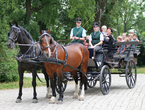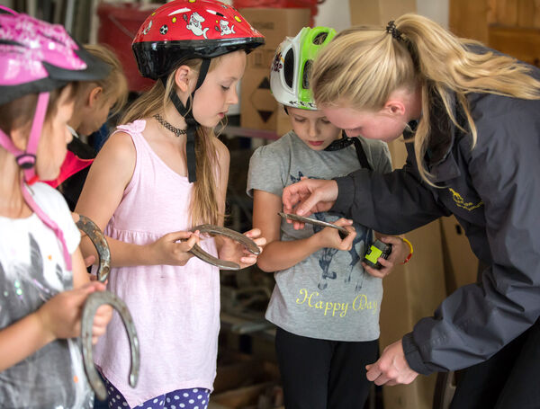 Neben dem Erlebnis Fohlentaufe können die jungen Gäste an verschiedenen Aktionsstationen in die Welt der Pferde eintauchen und das Hauptgestüt Graditz erkunden. In der Reithalle dürfen sie einmal selbst über einen Hindernisparcours springen, mit der Kutsche geht es durch den Schlosspark und auch das Ponyreiten darf natürlich nicht fehlen. Bei einer kindgerechten Gestütsführung schließen die Kinder Freundschaft mit Valerius, dem mit 32 Jahren gestütsältesten Hengst. Freundlich senkt er seinen Kopf, um sich von einer Vielzahl kleiner Hände streicheln zu lassen. In der Schmiede sehen sie gespannt dabei zu, wie ein glühendes Eisen aus dem Feuer geholt wird. Anschließend darf sich jeder ein Hufeisen mit nach Hause nehmen. Das bringt nicht nur Glück, sondern erinnert auch noch lange an einen wunderbaren Tag im Hauptgestüt.