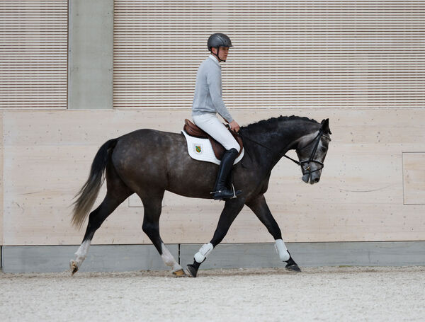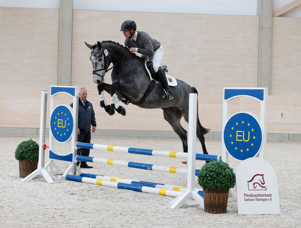 Moritzburg. Zahlreiche Gäste mit Interesse am Pferdekauf fanden sich am 11. April zur Präsentation unserer Verkaufspferde in der Veranstaltungsreithalle am Neuen Gestüt ein. Für einige Youngsters war es der allererste Auftritt vor Publikum, den sie vorbildlich meisterten. Die springveranlagten Nachwuchspferde bewiesen ihr Talent an den ersten Sprüngen, die Dressurpferde wussten mit ihren guten Grundgangarten und ersten Lektionen zu gefallen. Das in diesem Jahr mit sieben Pferden umfangreiche Lot Sächsisch-Thüringischer Schwerer Warmblüter fand ebenfalls große Aufmerksamkeit bei den Zuschauern. Die meisten Gäste nahmen zudem das Angebot wahr, die Pferde anschließend in ihren Boxen persönlich kennenzulernen und/oder mit den jeweiligen Reitern ins Gespräch zu kommen.