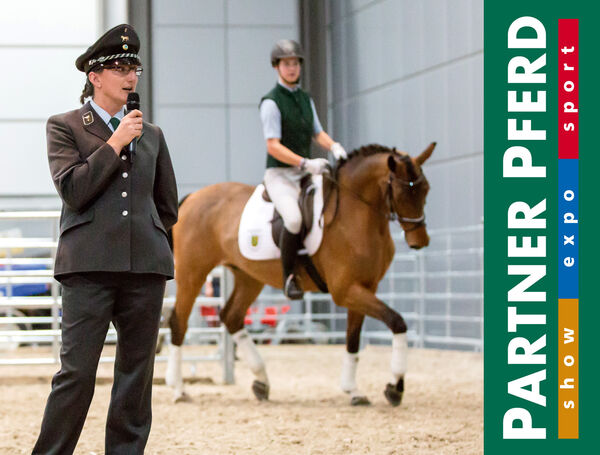 Im Aktionsring der Halle 3 werden die Auszubildenden des Hauptgestütes Graditz unter Anweisung von Ausbildungsleiterin Antje Kleinschmidt die Ausbildung von Reiter und Pferd demonstrieren und einen Einblick in die Berufsausbildung des Pferdewirtes geben.