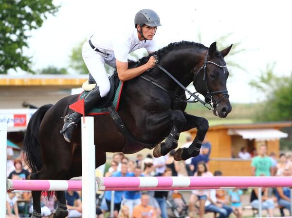 Zum Turnier in Seifersdorf am vergangenen Wochenende machte der Contenaro-Accusé-Sohn CONVERTER auf sich aufmerksam: Unter seinem Reiter André Stude bewies er in drei tadellosen Runden sein Springtalent. Damit belegte er in Springen der Klasse A** den 1. und 2. Platz sowie in der Springpferdeprüfung Klasse L den 3. Platz.