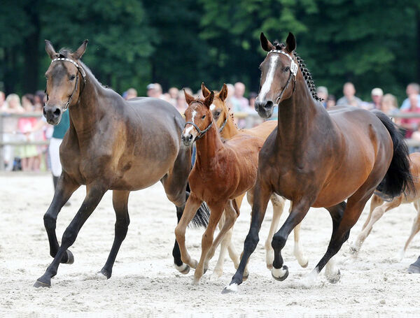 Am frühen Nachmittag war es dann soweit: Vor ausverkaufter Tribüne eröffneten die Parforcehornbläser zu Pferde unter Leitung von Oberstutenmeister Hans-Joachim Smirek die diesjährige Schau. Unter den zahlreich angereisten Ehrengästen befand sich auch Staatsminister Thomas Schmidt, der wie schon in den vergangenen Jahren die Schirmherrschaft für die Gestütsschau übernommen hat. Dank der ausgewogenen Gesamtchoreografie der etwa zweistündigen Veranstaltung kamen engagierte Züchter, Pferdesportler und pferdeliebende Laien gleichermaßen auf ihre Kosten.