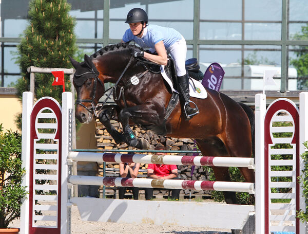 Zum Turnier vom 16. - 18. Juni präsentierte sich der Colestus-Sohn COLPORTAS wieder von seiner besten Seite. In der Springpferdeprüfung Klasse L holte er unter seiner Reiterin Stefanie Ogkler am Freitag den Sieg mit der Note 8,3. Einen weiteren Sieg sicherte sich der 6jährige Dunkelbraune am Sonnabend in der Springpferdeprüfung Klasse M* und erhielt dafür die Note 8,5.