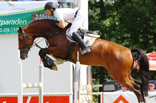 Ebenfalls mit dem Hengst LEMWERDER gelang Philipp Schober der Sieg in der Springprüfung Kl. M m. St. mit einem Nullfehlerritt in einer Zeit von 41.05.
