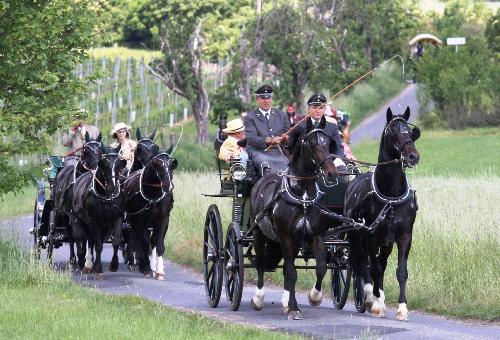 An der Weinberg Rundfahrt in Proschwitz nahm am 22. Mai 2011 erstmals auch ein Gespann des Landgestütes teil. Die Schweren Warmblüter EPIKUR und COLUMBUS, angespannt an die Turnierwagonette, wurden von GOW Lutz Müller und seinem Beifahrer GW Markus Wendt vorgestellt.