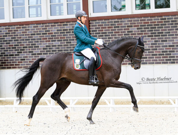 SANTO DOMINGO sicherte sich unter Kay Pawloska den 4. Platz (Note 7,50) in der Dressurpferdeprüfung Klasse L.