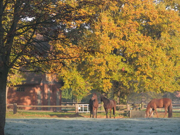 Auf dem Foto sind die Graditzer Pferde auf der Herbstweide zu sehen, die für die Entwicklung wachsender Pferde, aber auch für die tragenden Stuten von großer Bedeutung ist. Die hohen Niederschläge in diesem Herbst schränkten diese Weideform etwas ein.