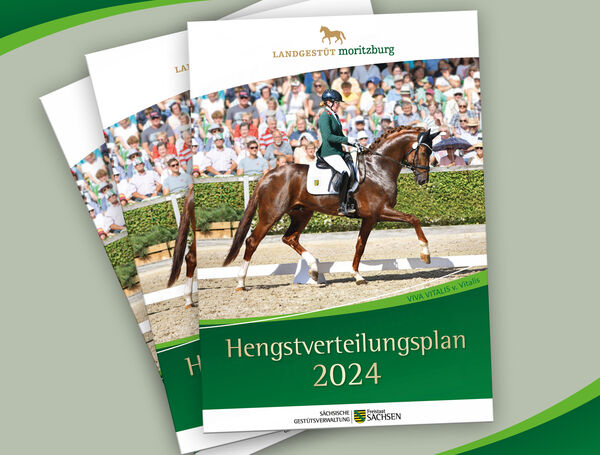 Alle in der Zuchtsaison 2024 aufgestellten Moritzburger Landbeschäler im Überblick gibt es im aktuellen Hengstverteilungsplan der Sächsischen Gestütsverwaltung. Neben Informationen zu den Hengsten beinhalten die Broschüren aktuelle Veranstaltungs-, Lehrgangs- und Leistungsprüfungstermine sowie die Kontaktdaten aller Deck- und Besamungsstationen der SGV.