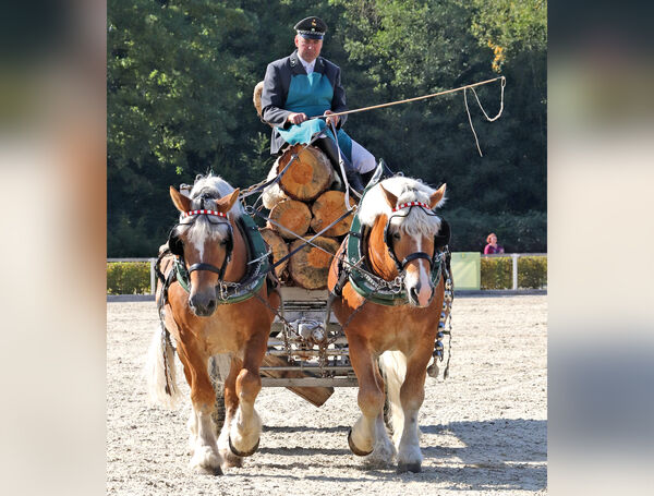 URMEL und LAUSEJUNGE vor dem Langholzwagen, Fahrer: GOW René Gebhardt | Foto: P. Tendler