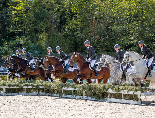 Große Dressurquadrille der Reitpferdehengste | Foto: P. Tendler