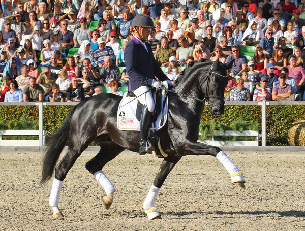 Vreschen-Bokel. Hannoveraner Prämienhengst QUANDO UNICO v. Quantensprung konnte bei seinem ersten offiziellen Auftritt unter Ella-Alea Maulhardt auf Anhieb die Siegerschleife für sich beanspruchen. Dem Erfolg des Reiter-Pferd-Paares in der Dressurpferdeprüfung Kl. M beim Turnier in Vreschen Brokel (10. – 12. Juli) sind nur ein paar gemeinsame Trainingswochen vorausgegangen, nachdem die Reiterin den sportiven Rapphengst von Hermann Gerdes übernommen hatte.