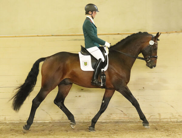 In der Reitpferdeprüfung präsentierte sich der Trakehnerhengst FREIHERR VON STEIN unter Kay Pawlowska in Topform und siegte souverän mit der Note 8,8. Susann Göbel platzierte sich mit dem 4jährigen Depeche Mode-Sohn DEPECHE ROYALE gleich dahinter und erhielt die Note 8,4. Einen tollen Sieg erreichte das Paar in der Dressurpferdeprüfung Klasse A, wobei es von den Richtern die Note 8,2 bekam. Direkt dahinter platzierte sich Kay Pawlowska mit dem Millennium-Sohn FREIHERR VON STEIN auf Rang 2 (Note 8,0).