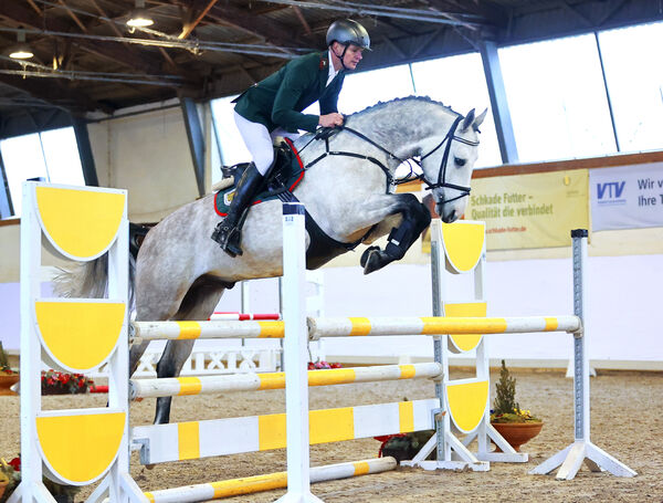 Zwickau. Einen erfolgreichen Start in die neue Turniersaison gab es am 24. Februar für die springveranlagten Moritzburger Landbeschäler zum Turnier in Zwickau. Der Prämienhengst und Stakkato Preisträger UNITED POWER v. Untouchable siegte unter Sattelmeister André Stude auf Anhieb mit einer Wertnote von 8,5 in einer Springpferdeprüfung der Kl. A**. Darüber hinaus sicherte sich der sportive Schimmel eine vordere Platzierung in einer A*-Springpferdeprüfung.