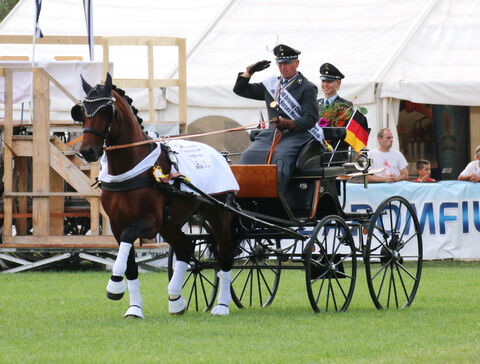 Bei Temperaturen über 30°C wurden im ungarischen Staatsgestüt Mezöhegyes die Weltmeisterschaft der jungen Fahrpferde ausgetragen. VALENZIO FST v.…